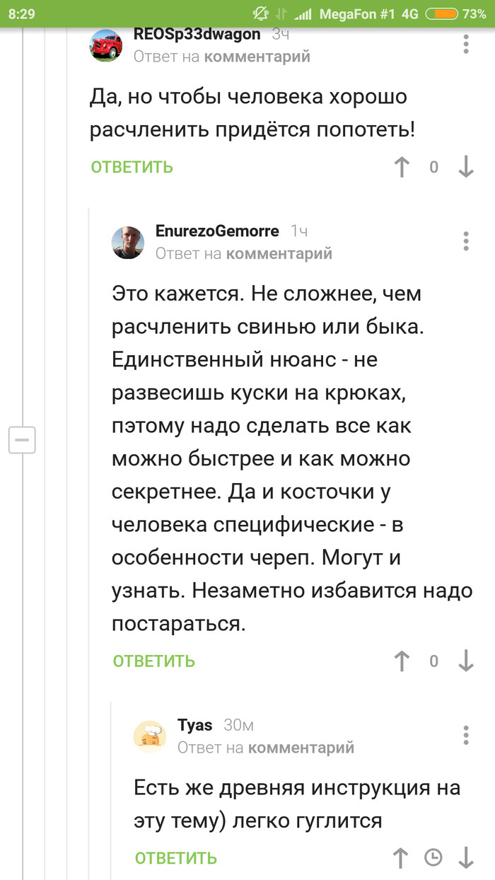 А я теперь думаю что я был канибалом, человечена вкусная...