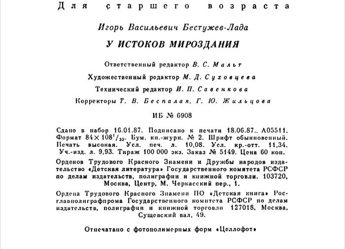 Когда-то, лет 35 назад, мне попала в руки книга "У истоков мироздания", автором которой был Игорь Васильевич Бестужев-Лада.