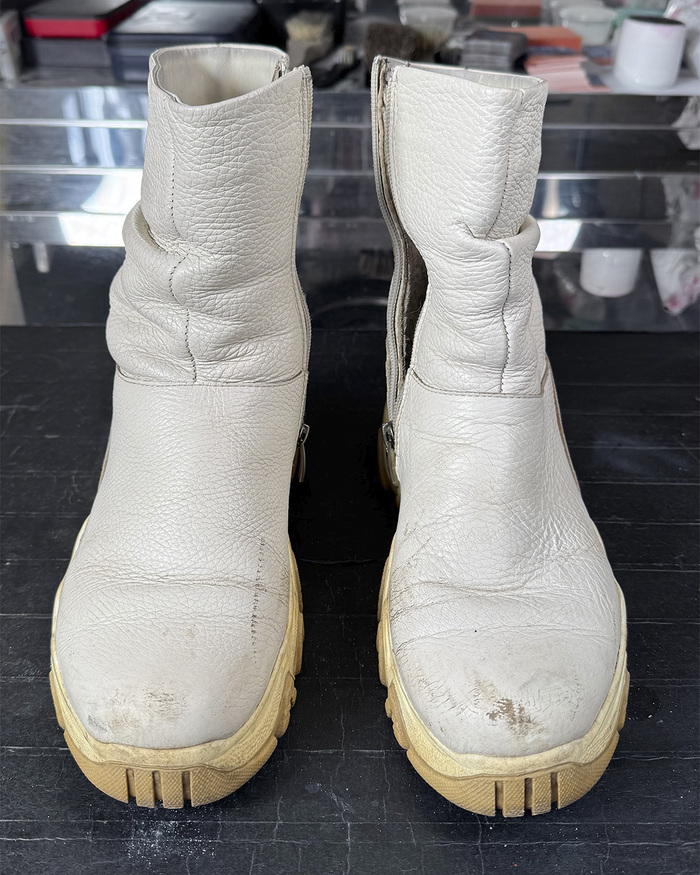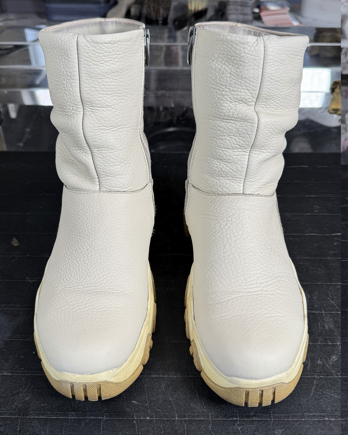 Белое должно быть белым. Тем более, что скоро белым будет всё вокруг. Белые сапоги в холодное время года, когда все носят тёмные тона, создают ощущение невесомости. Вот мы и решили, пусть не будет на них никаких царапин и потёртостей. Только чистый белый цвет. Делимся результатом реставрации.