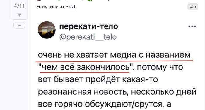 В планах сделать отдельную категорию ЧБД, куда будут попадать все новости с продолжением.
