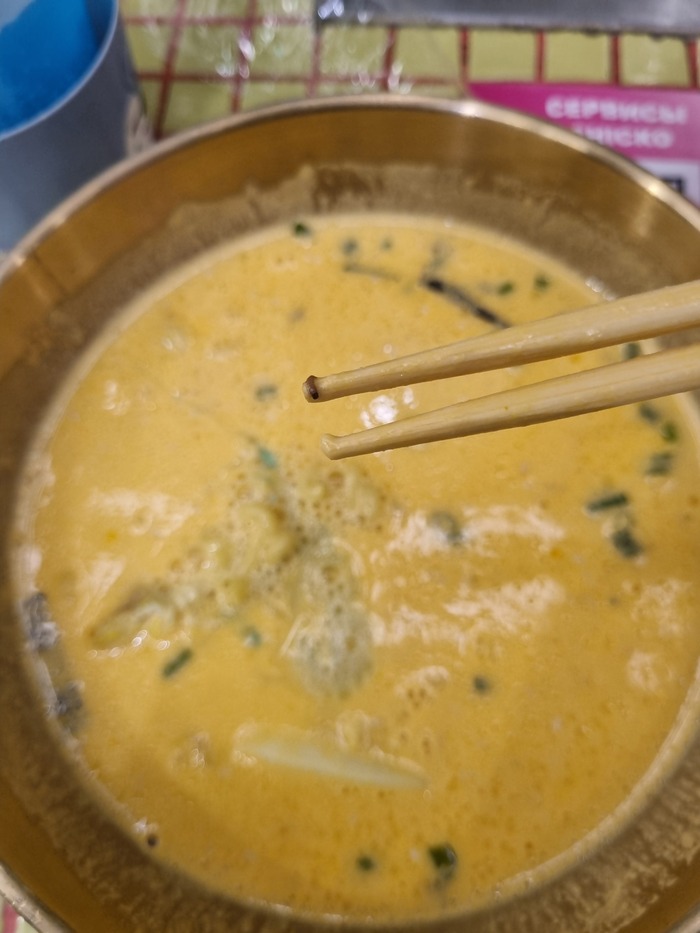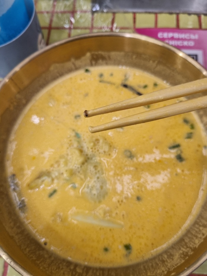 Заказ пришел, поел я значит как обычно. Из сырного рамена съел яйц и половину лапшу, бульон тоже попил немного. Вдруг увидел я в своем лапше такое чудо в виде червяка. Я сразу позвал сотрудника и управляющего. Они сказали, по словам шеф повара, что это просто какая-то личинка насекомого, находящаяся в зелени. Я побежал туалет, пытался стошнит, но не получилось. Сотрудники приносили извинения, обещали подарить всякие промокоды скидки, но блять!! Але. Какие скидки, можете оставить все их у себя. Просто очень боюсь, что это будет какой-то жесткий паразит. После этого сразу побежал купить сорбент и противогелминтные. Было так все противно. Когда вышел, успел снять несколько фоток, прежде чем сотрудники мигом унесли блюдо: