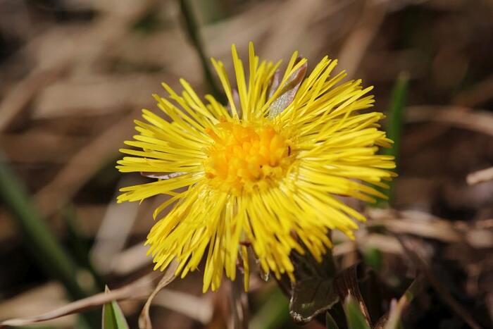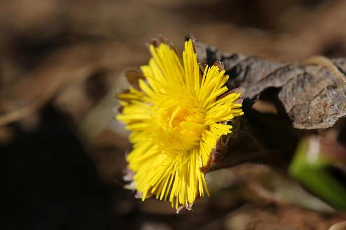 На солнечных полянках появились первые ярко-жёлтые цветы мать-и-мачехи
