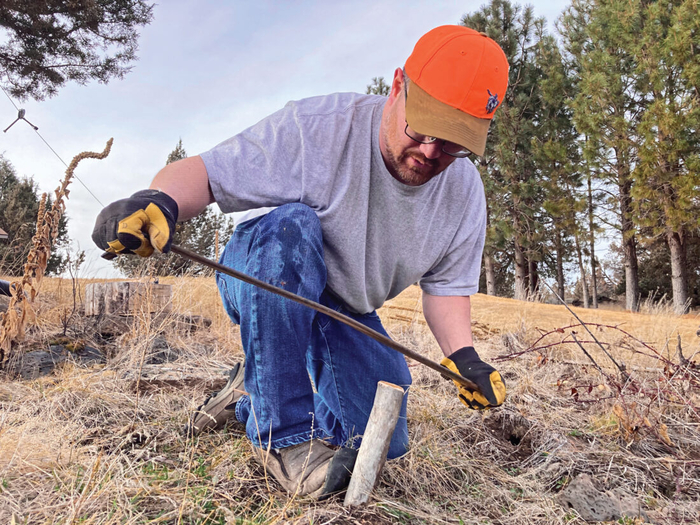 Опытные хрюкачи становятся на колени у вбитого кола, почти оседлав его, и пилят железо поверх него, держась одной рукой за конец вбитого кола. Они также корректируют глубину кола, если он недостаточно плотно вбит в землю. Слишком длинный кол не будет вибрировать с нужной частотой. Люди, как правило, используют большой кол, примерно 5 CM в диаметре, с довольно длинным сужением к острию. Слишком тупой кол не только затрудняет вбивание в землю, но и не удерживает его в плотном контакте с землей, что имеет решающее значение как для создания вибраций, так и для их передачи предполагаемой аудитории. В зависимости от древесины, верхнюю часть кола можно скосить или скруглить, чтобы предотвратить отслаивание углов во время выхрюкивания. Эксперты предпочитают для гвоздей древесину средней твердости.