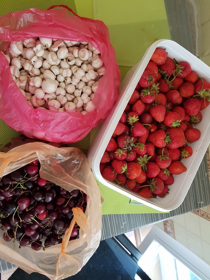 Цена, конечно, по акции, и это действительно дешевле, чем в ларьках и других магазинах. Но у нас сейчас жара за 30 стоит, и эта несчастная черешня киснет на этих витринах, еще и мошки родятся вокруг нее. Недавно, стоя у этой самой витрины, я обратила внимание работника торгового зала на то, что люди вроде как не свиньи, чтоб в такой грязи копаться, и даже предложила решение этой проблемы. Убрать продукт на холод, например туда, где открытые холодильники с квасом, салатом и тд. Она обещала передать руководству, а под и ныне там.