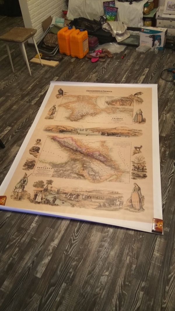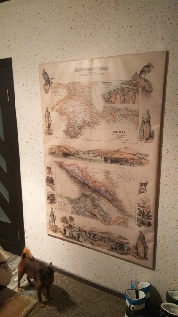 Среднюю часть хотел закрыть большой картиной-баннером. Долго искал, что бы такое выбрать в качестве темы. И надумал - мы с женой любим летом ездить в Крым - так карта полуострова была бы очень кстати и напоминала бы нам о лете.