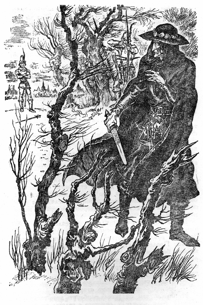 "-- Вот ты, мастер Беннет, отправляешься на войну и считаешь себя мудрецом, а не знаешь, что птицы -- прекрасные часовые, -- ответил Эппльярд. -- Они первые дают знать о предстоящей битве. Если бы мы сейчас находились в лагере, я бы сказал, что нас выслеживают вражеские стрелки. А ты бы ничего не заметил!...