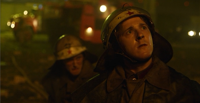 Брюханов и Фомин, тут поддерживают версию сериального Дятлова ,о том что причиной аварии, стал именно взрыв бака. Сериальный Дятлов докладывает, что в здании реактор, всего три и шесть рентген в час. Фомин выдвигает версию, что уровень радиации такой от технической воды. Брюханов отдает приказ производить регулярную проверку дозиметристами и выдать нормальный дозиметр. Так же Брюханов, требует разбудить местный исполком, чтобы они раздали приказы. В это время нам показывают толпу народа на мосту, которые любуются заревом пожара над атомной электростанции. Ну если что, люди которые не спали, наблюдали за отдалённым пожаром с балконов своих же квартир. Одной женщине зрелище пожара нравится и она говорит что очень красиво. С моста кстати зарево пожара видно не было, так как рядом с мостом находится лес. Нам показывают, как на зрителей на мосту, опускается радиоактивный пепел.