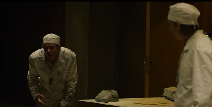 Ну это как обстояло дело в реальности, возвращаемся к сериалу. Ранним утром академику Легасову (киношному) звонит зампред Совета министров СССР Щербина и рассказывает об аварии на ЧАЭС. Легасов пытается убедить Щербину, провести срочную эвакуацию, но тот запрещает ученому рассуждать о чем-то кроме чисто научных вопросов и кладет трубку.