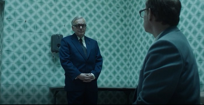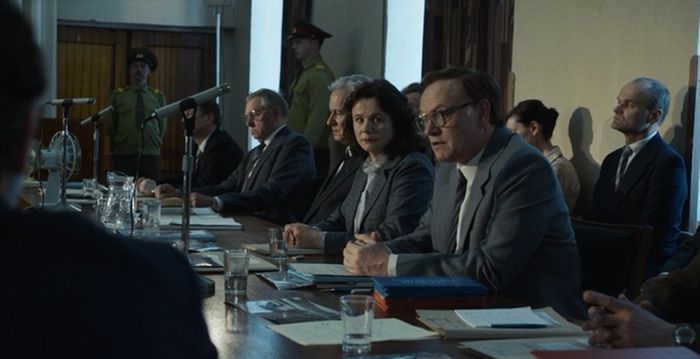 Тем временем, Легасов и Щербина уже находятся в Москве. Щербина говорит Легасову, что Хамюк вчера арестовали, а за что он не знает. Ну а дальше, уже на совещании, Щербина докладывает обстановку, о том что пожар удалось локализовать и угроза взрыва пропала. Тут же на совещании сидит главный упырь из КГБ, перед которым Щербина ковриком стелется. Слово берет Легасов, и принимается крутить свою обыденную шарманку, что весь регион надо эвакуировать, так же надо расстрелять всех животных, сжечь все леса, снять всю верхнюю почву, ну и зарыть её поглубже. В общем сериальщики решили еще больше жути нагнать, а то её маловато за весь сериал было.