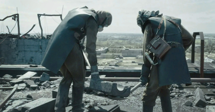 Еще один откровенно неточный момент - Щербина и Легасов наблюдают за вертолетом с соседней крыши. На них нет никаких средств защиты – ни ОЗК, ни даже респираторов. Случись такое на самом деле, московских начальников пришлось бы хоронить вместе с экипажем вертолета.