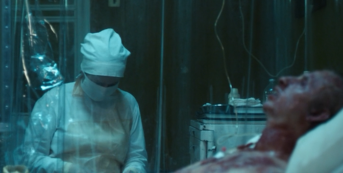 Радиация в сериале наносит людям страшные раны. Пожарный, схватившийся за кусок графита из взорвавшегося реактора, получает тяжелейший ожог ладони. У сотрудника ЧАЭС, опершегося на металлическую дверь реакторного зала, на бедре тут же проступает огромное кровавое пятно. Медсестра советует жене другого пожарного, приехавшей из Припяти в Москву, чтобы навестить мужа в больнице, не прикасаться к нему – иначе велик риск схватить летальную дозу. А самого мужа лучевая болезнь убивает за считанные часы: днем он спокойно режется в карты с соседями по палате, а ночью покрывается язвами и кричит от боли.