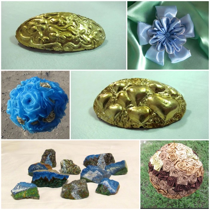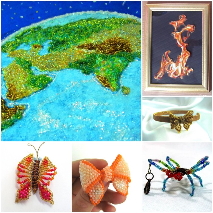 Люди начали мне нести свою ручную работу, другого вида бантики, картины из уральских самоцветов, брелки из бисера, вышитые платочки, большие деревья из бисера. Я ставила их