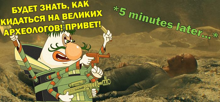 Итак, вернёмся к сюжету, пока от него ещё что-то осталось. Мамин коллега Измаил оказывается предателем. Он на самом деле хочет заполучить корону Саббака сутулого.