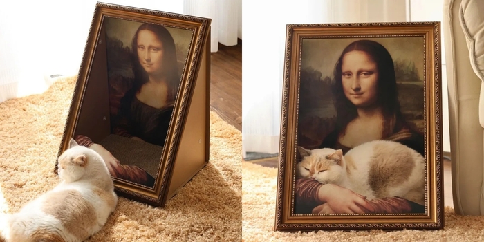 Креативный кошачий домик в виде картины с Мона Лизой. Стоит такой около 1800 руб. Ссылка на него