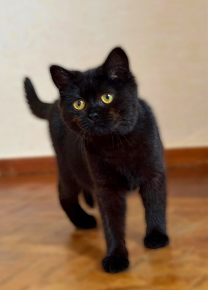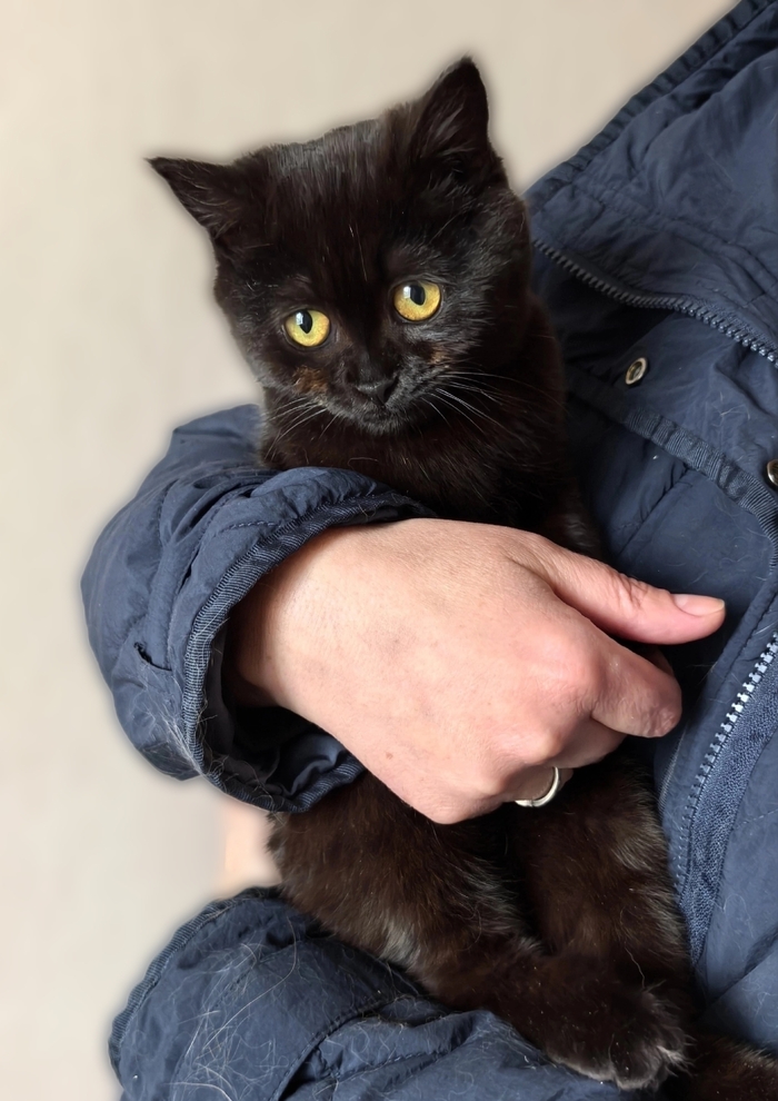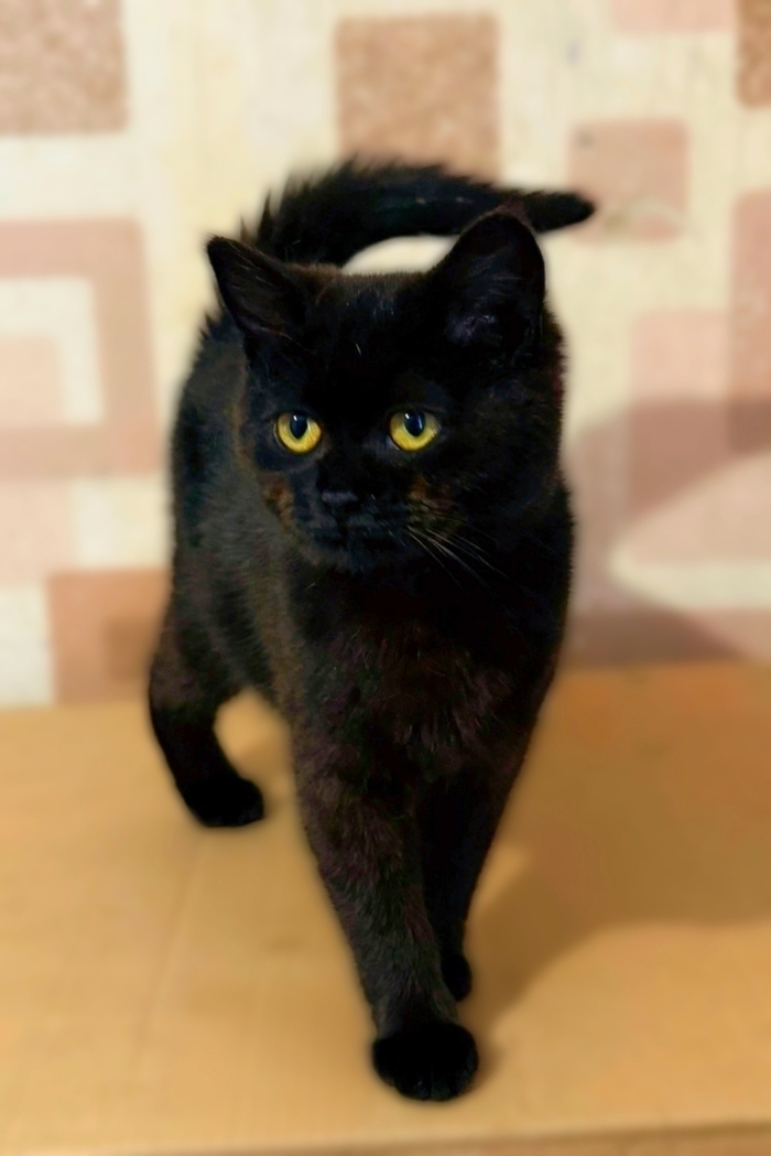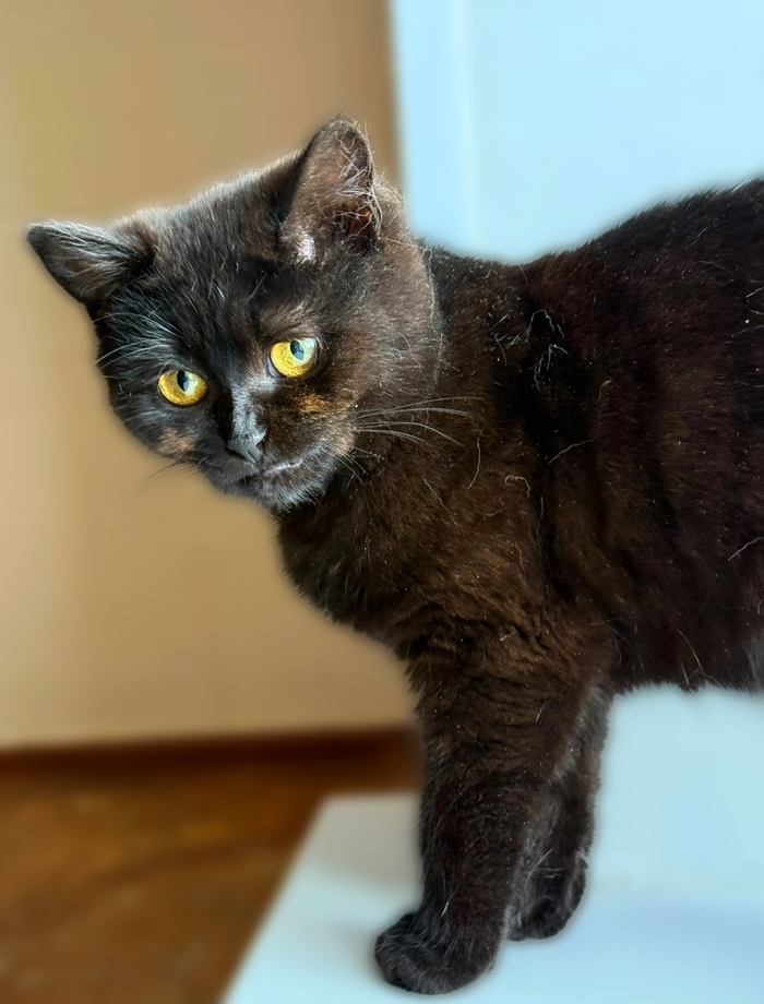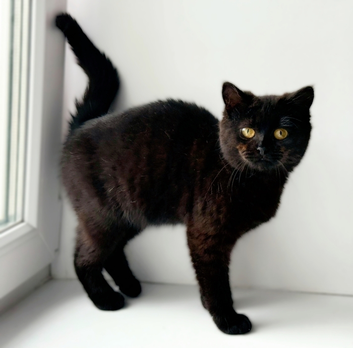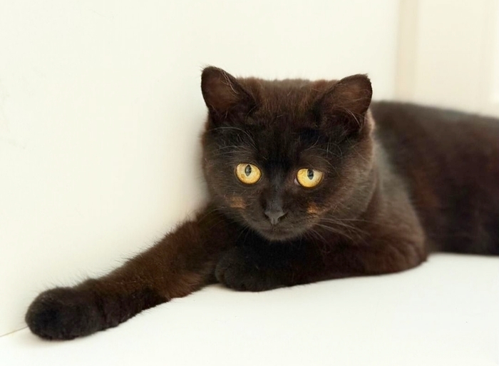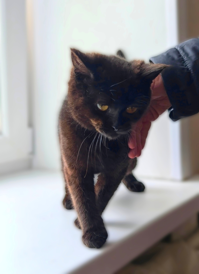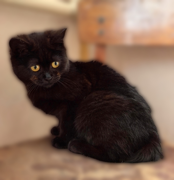 🐾🐾🐾Познакомьтесь, это Линда, юная кошечка🐈⬛ неземной красоты, миниатюрная, нежная шоколадка. Окрас тёмно-коричневый, почти чёрный. Метис шотландской породы с выразительными, слегка грустными глазками цвета янтаря и румяными щёчками.