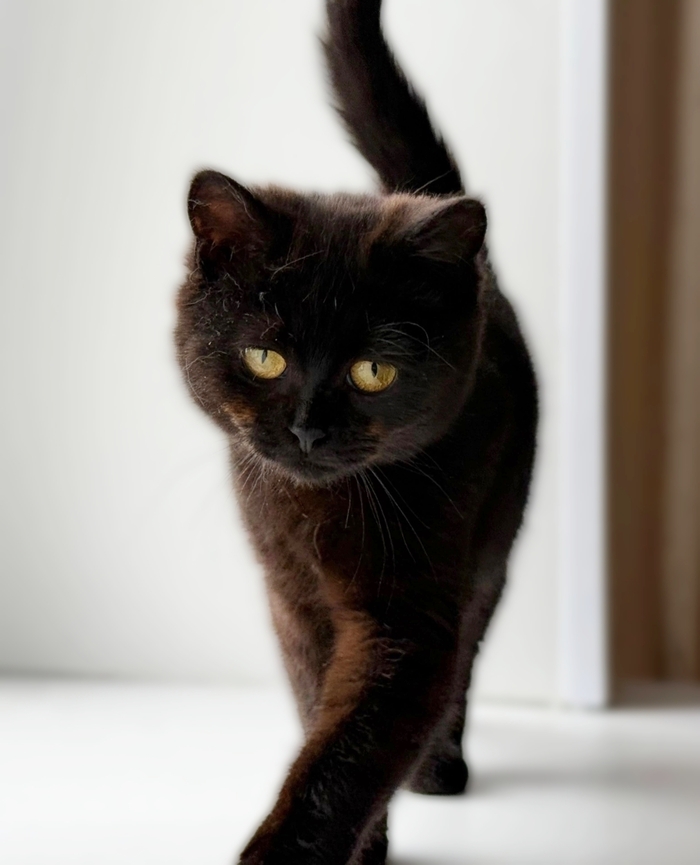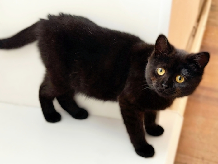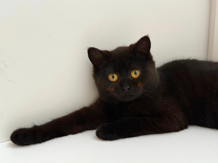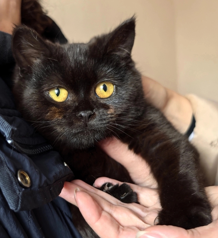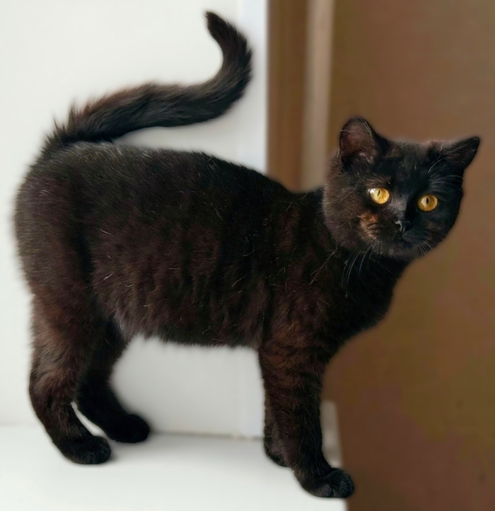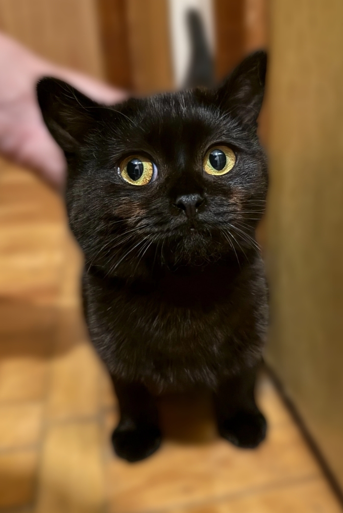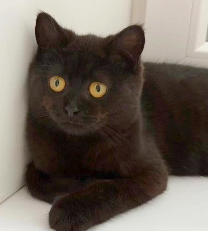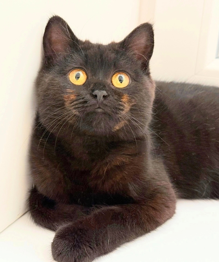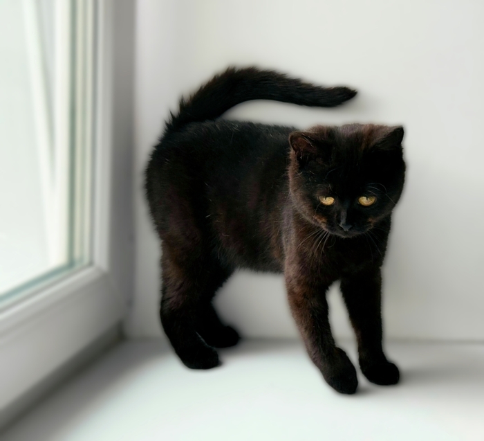 🐾🐾🐾Познакомьтесь, это Линда, юная кошечка🐈⬛ неземной красоты, миниатюрная, нежная шоколадка. Окрас тёмно-коричневый, почти чёрный. Метис шотландской породы с выразительными, слегка грустными глазками цвета янтаря и румяными щёчками.