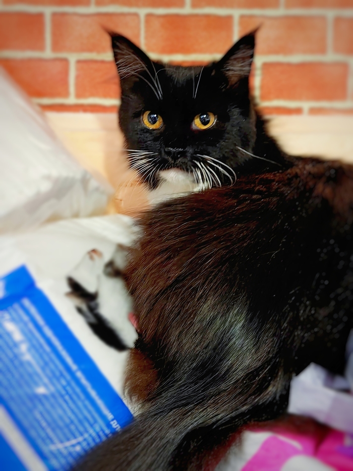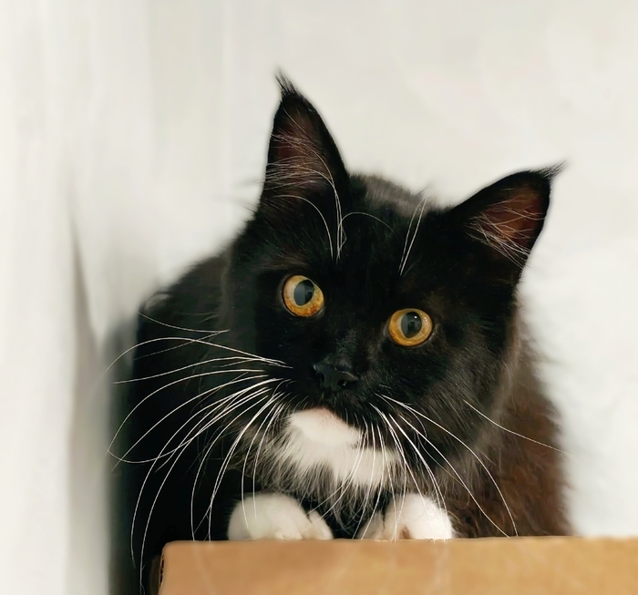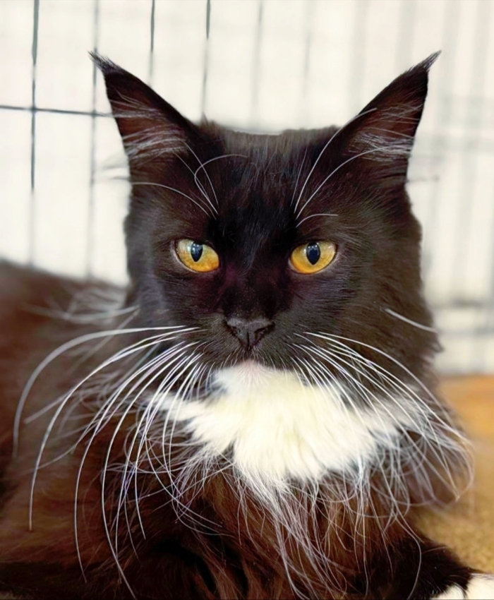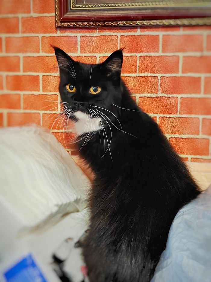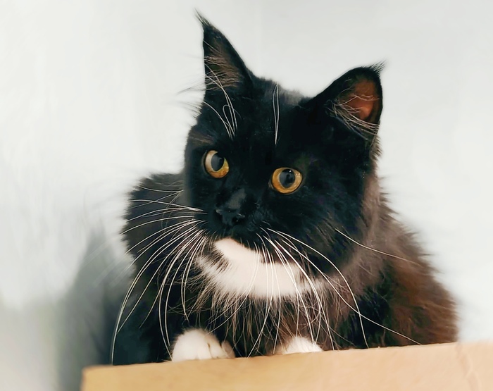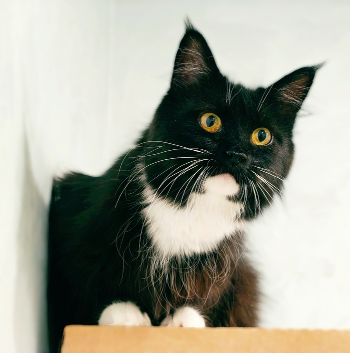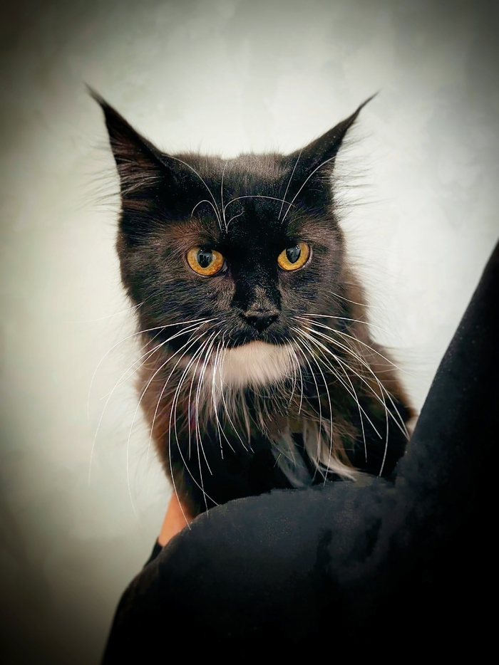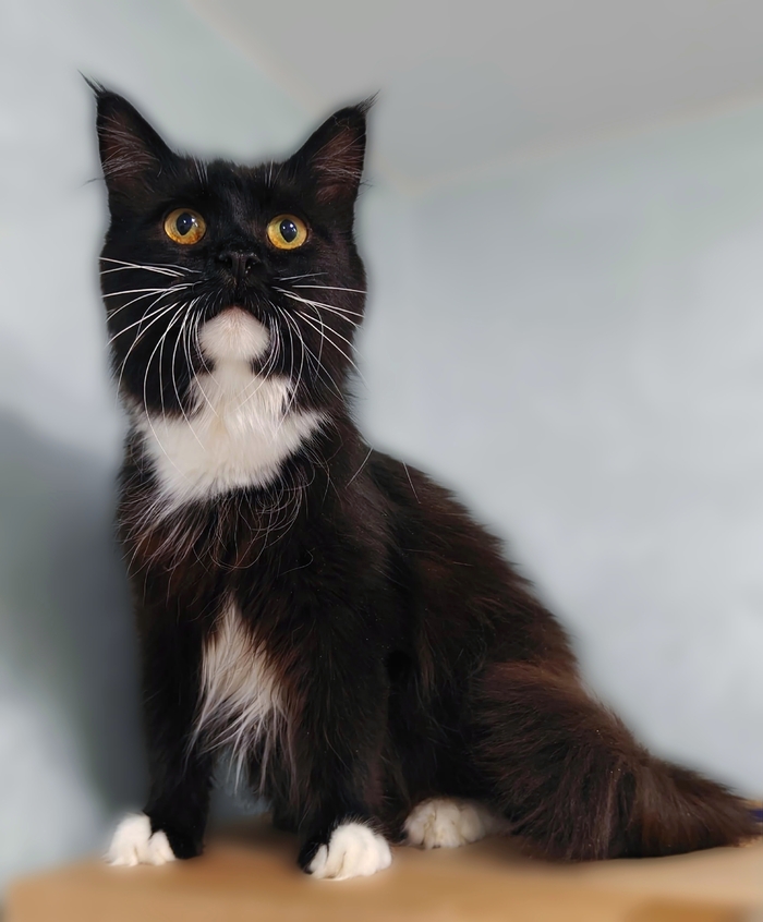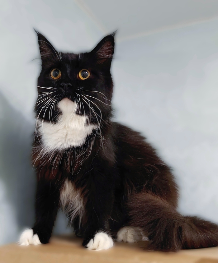 🐾🐾🐾Познакомьтесь, это Серена, роскошная, молодая кошка чёрно-белого маркизного окраса.🐈⬛ Похожа на метиса Мейн-куна.