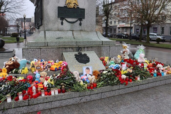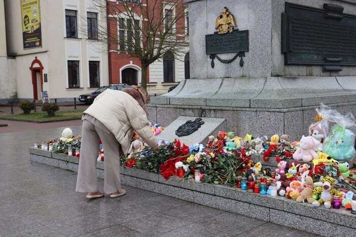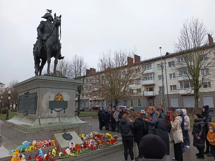 По словам женщины, которая живет в Черняховске, эта новость всполошила город. В центре появился стихийный мемориал: люди несут цветы, игрушки и свечи.