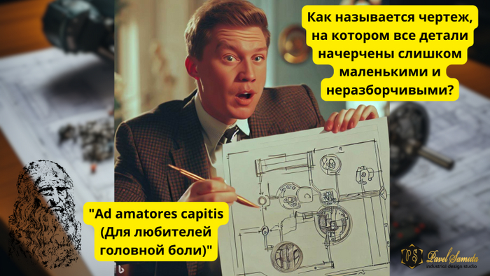 Как называется чертеж, на котором все детали начерчены слишком маленькими и неразборчивыми? - "Ad amatores capitis (Для любителей головной боли)".