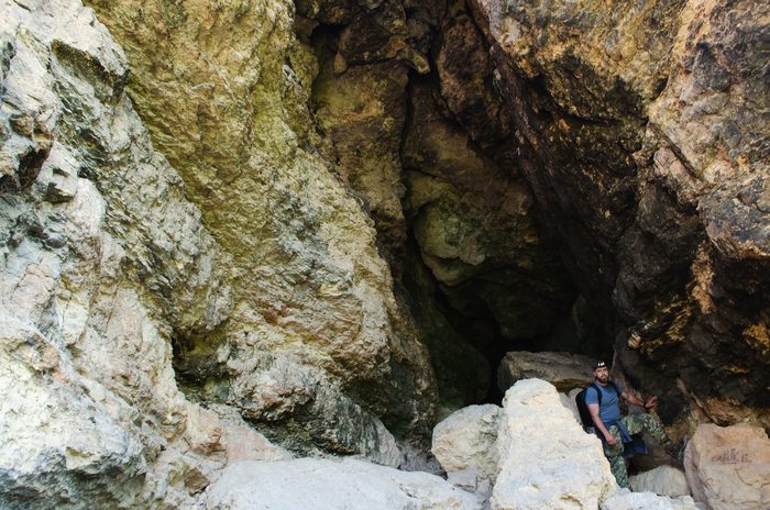 И ещё позже, на очень интересную, но не внушающую доверия пещеру. Во всяком случае совсем до конца я не рискнул по ней пролезть… очччень много трещин в стенах.