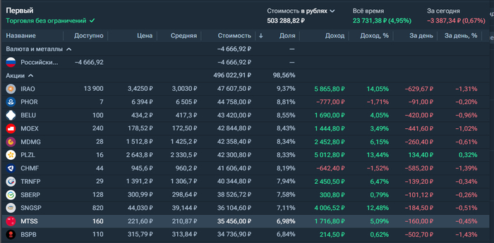Акции наконец перешагнули психологическую отметку в 500к. Взял бумаги строго по своему списку, на котировки особо не смотрел.
