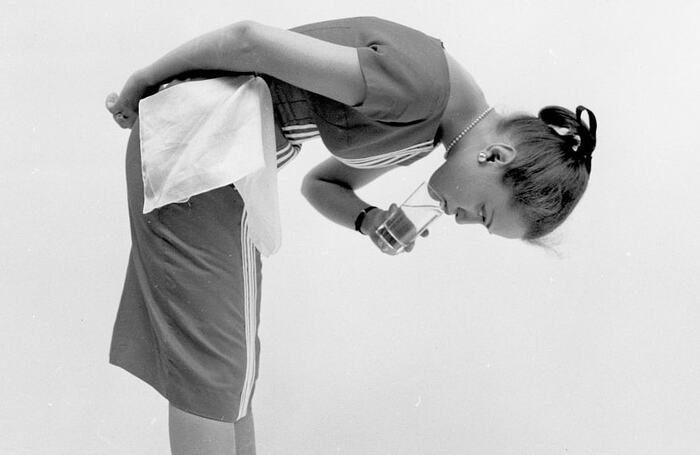 2. Икота. Да, бывают клинические случаи со спазмами диафрагмы (да, я загуглил шоцэтакэ) на протяжении многих лет, но. В 99% случаев помогает пол-стакана воды, выпитый с противоположной стороны, стоя и согнувшись буквой Г, как на монохромной фотке в посте. Если не хочется заплетаться в такую фигуру - наберите воды в рот, нагнитесь, поднимите подбородок вверх и проглотите воду. Повторить достаточно пару раз.