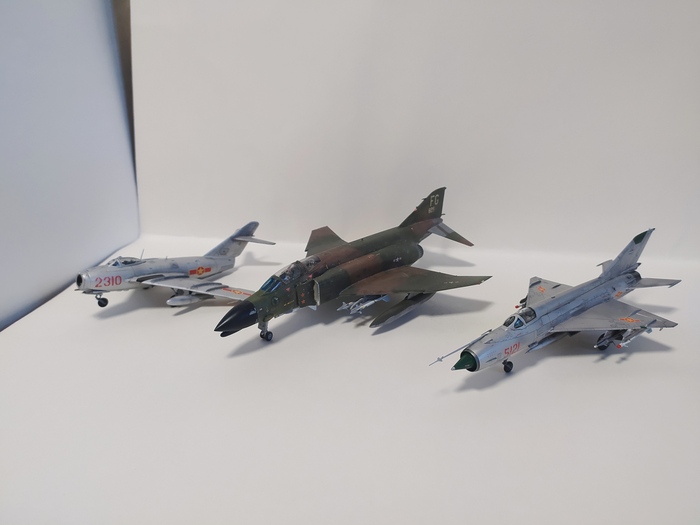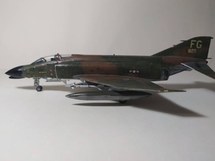 Всё мы слышали песню про то, как Фантом американского лётчика сбивает злобный "вьетнамский" пилот ЛиСиЦын. Мне эта песня всегда нравилась. И, как моделисту, хотелось наблюдать на полочке самолёты главных героев. Год назад решился на покупки и сборки. Самый первый был, естественно Фантом. Проанализировав строки песни, понял, что Фантик будет никакой не палубный, а сухопутный в камуфляже. Я бегу по выжженной земле... (С). Мой Фантом несётся на восток... (С). Т. е. вылетал он с базы в Тайланде. В 72м масштабе выбор таких бортов ограничен. Для меня это был безальтернативный Italeri.