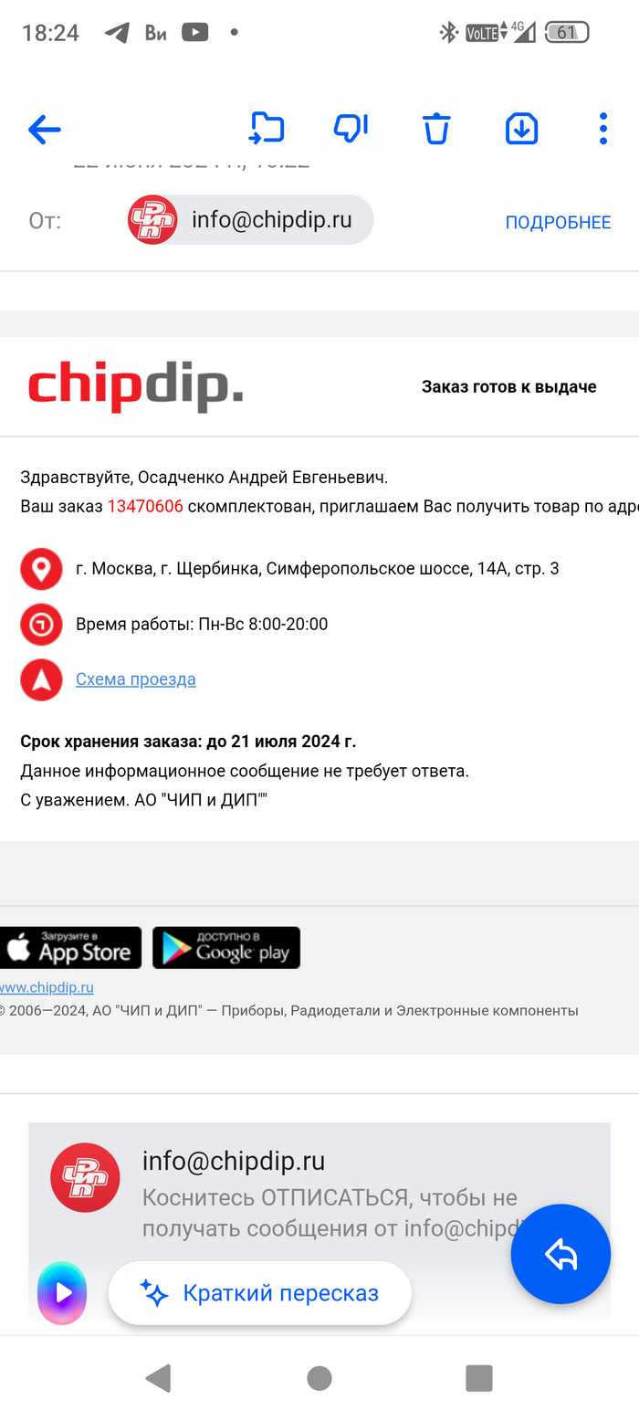 Я после такого хитрого хода, позвонил и в матерном выражении высказал что я думаю о их фирме Чип и Дип. Первый раз связался с покупками в этом магазине и опросил вернуть деньги. Я не знаю где набирают столь эффективных менеджеров? Может на улице входят через объявления столбовые? Я просто хотел отремонтировать бесперебойник клиента, оказалось проще съездить в магазин в центре города Сочи и купить немного дороже. До этого заказываю запчасти в магазине ekits.ru, даже трети подобных недопониманий не возникало за пять или семь интернет заказов.