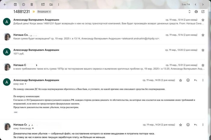 Магазин уже вроде не против вернуть мне стоимость заказа, но увлекательное исследование, на их взгляд, я должна подарить им безвозмездно: