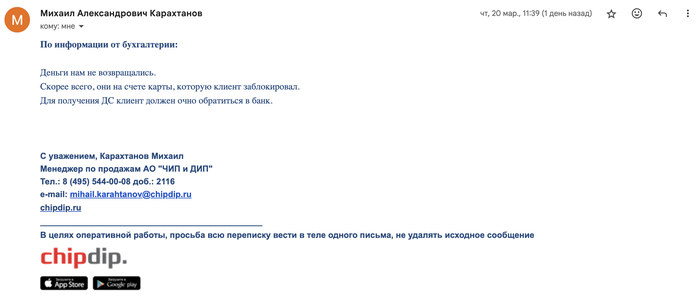 Глаз уже невольно начинает дергаться. Пишу в банк, банк шлет в магазин. Пишу в магазин — магазин шлет в банк: