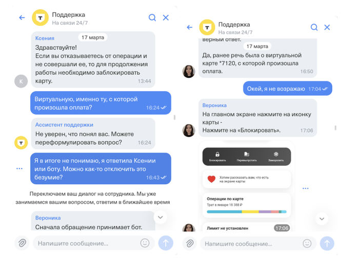 Т-Банк в свою очередь зафиксировал мое обращение и что-то там очень активно расследует: предлагают заблокировать мою карту, написать в магазин, ждать.