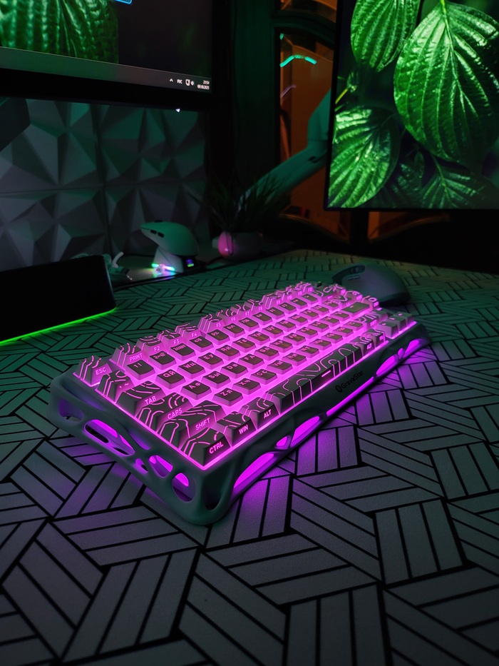 С минусами все. Из плюсов для меня в первую очередь это дизайн и тайпинг (звук+ощущения при печати), из-за двух этих факторов готов простить остальные огрехи вроде нюансов с подсветкой или не самого лучшего софта (софт типичный как у большинства китайских ОЕМ клавиатур, а за такие деньги хотелось бы QMK/VIA конечно. В остальном пока очень кайфую, особенно от новых свичей, которые оказались на удивление тихими. Вот сами послушайте: