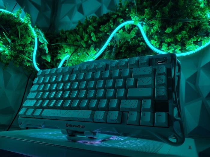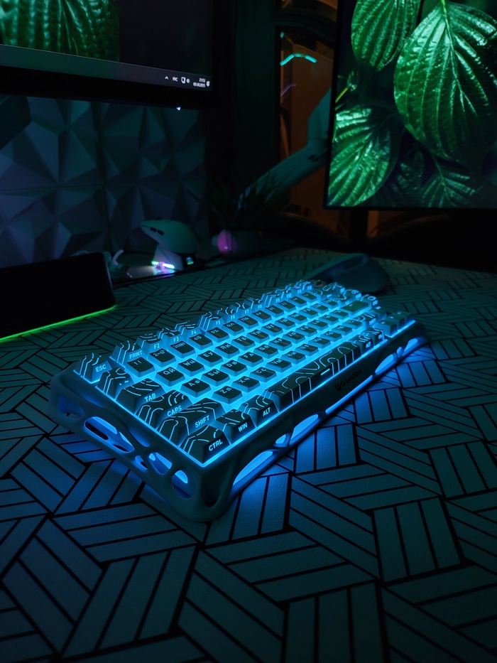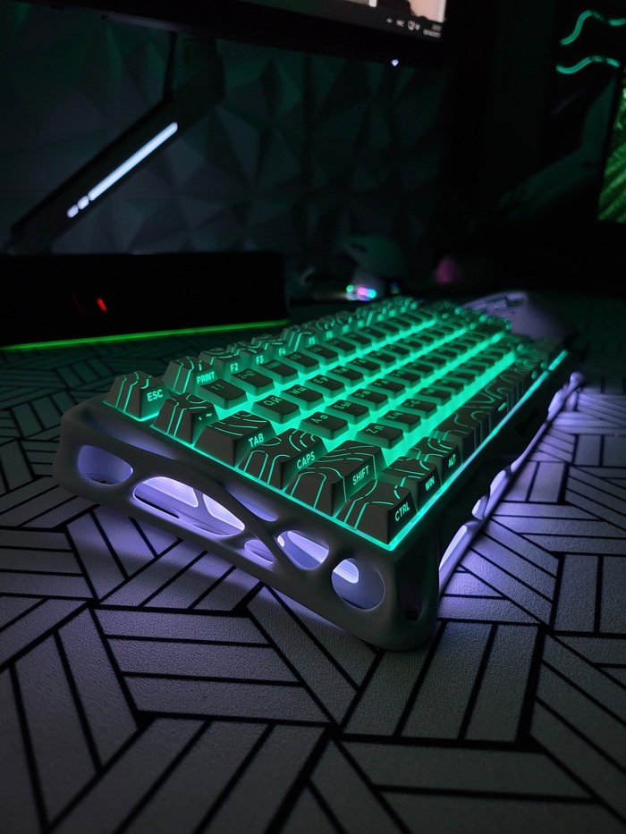 - Установлен микс из двух комплектов кейкапов ("пудинги" для букв и топографические для всех остальных клавиш;