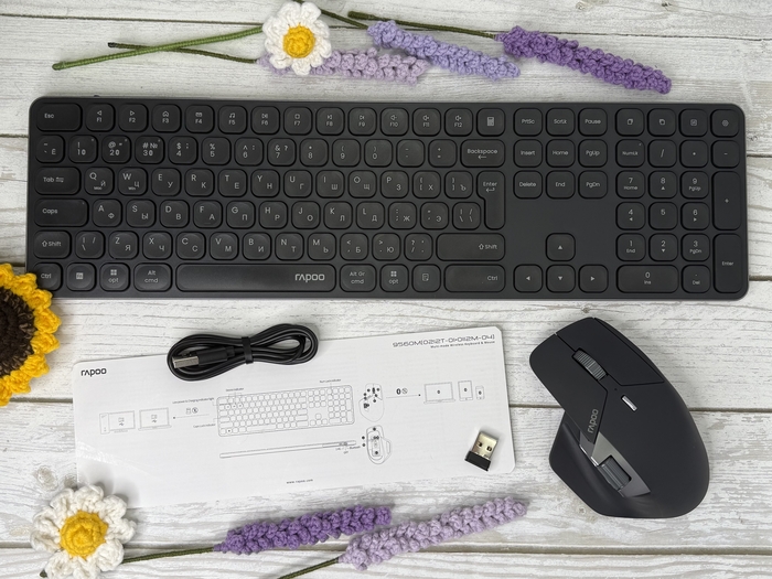 Так же стоит отметить, что устройства работают от одного USB-ресивера. А это экономит USB-разъемы и помогает не запутаться в куче «флешек».