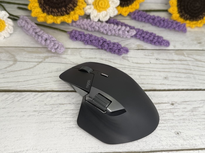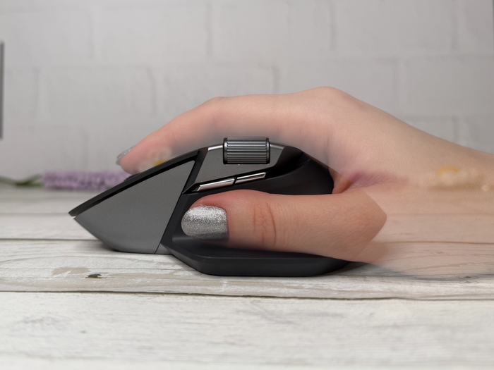 Поскольку у меня маленькая рука и я привыкла к хвату кончиками пальцев, по началу с данной мышкой возникали сложности. Даже при ладонном хвате было тяжело дотянуться указательным пальцем до вертикального скролла. Спустя пол дня работы я приспособилась «скроллить» средним пальцем.