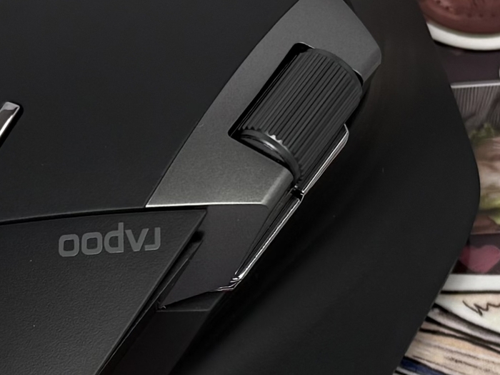 Ниже располагается легкая выемка с полкой для большого пальца. Ненавязчивый узор в виде прямых линий, помимо удобства, добавляет мышке солидности.