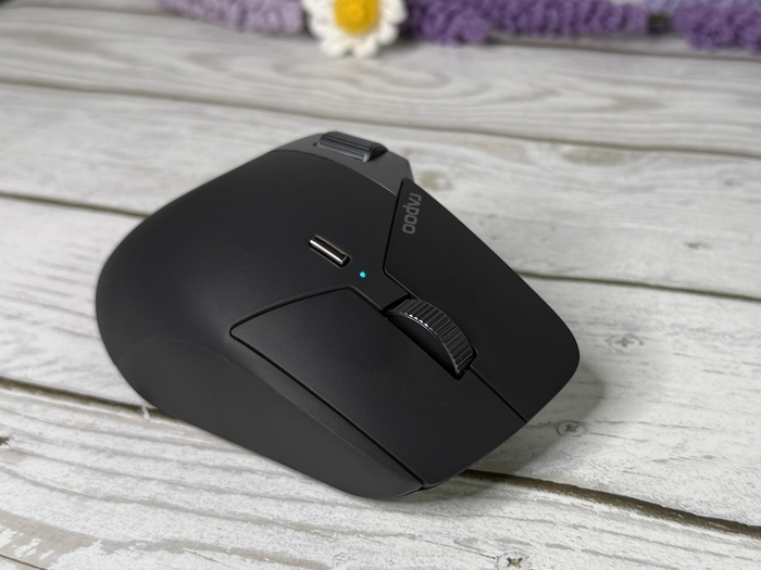 Спереди мышки, под ЛКМ и ПКМ находится слегка утопленный вглубь порт подзарядки Type-C.