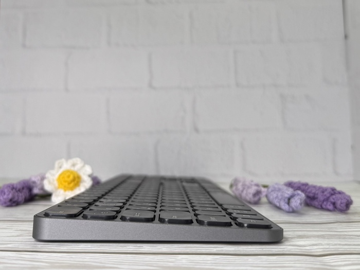 По толщине здесь тоже все минималистично: ближний край имеет высоту 5 мм, дальний — 10 мм. Да, клавиатуру сделали под небольшим наклоном, и это очень мудрое решение со стороны производителя.