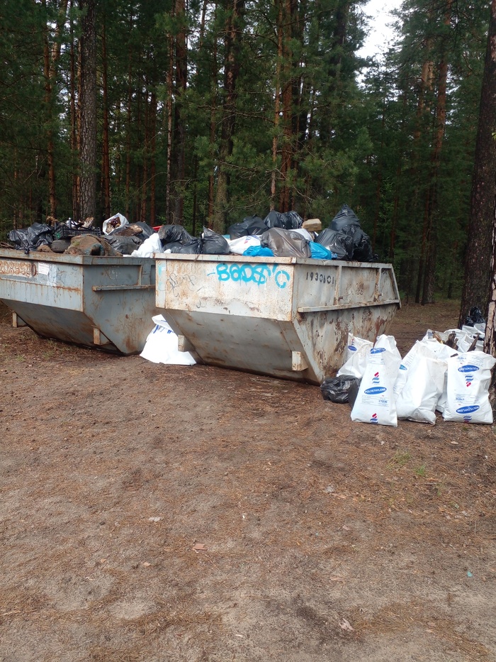 В общем, силами около 60 замечательных волонтеров удалось почистить небольшой участок леса, но собрали там очень много - наполнили 2 контейнера + мешки, которые туда не влезли