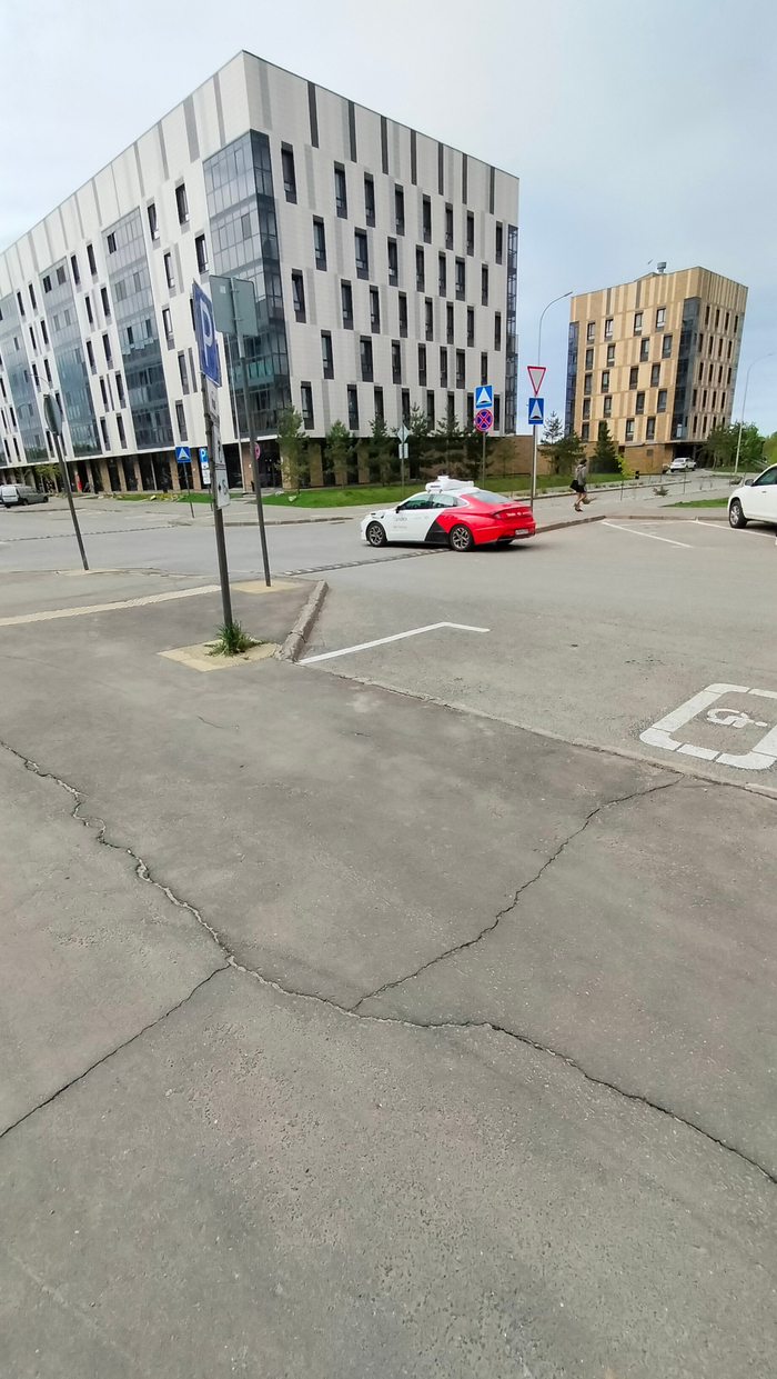 Беспилотное яндекс-такси. Но оператор сидит на пассажирском. Не знаю, возможно это тест. А может и уже работает. И конечно интересно как работает зимой.