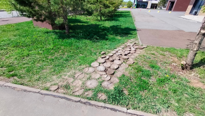 Именно так ходят люди. В результате чего вытоптали газон. Исправились.