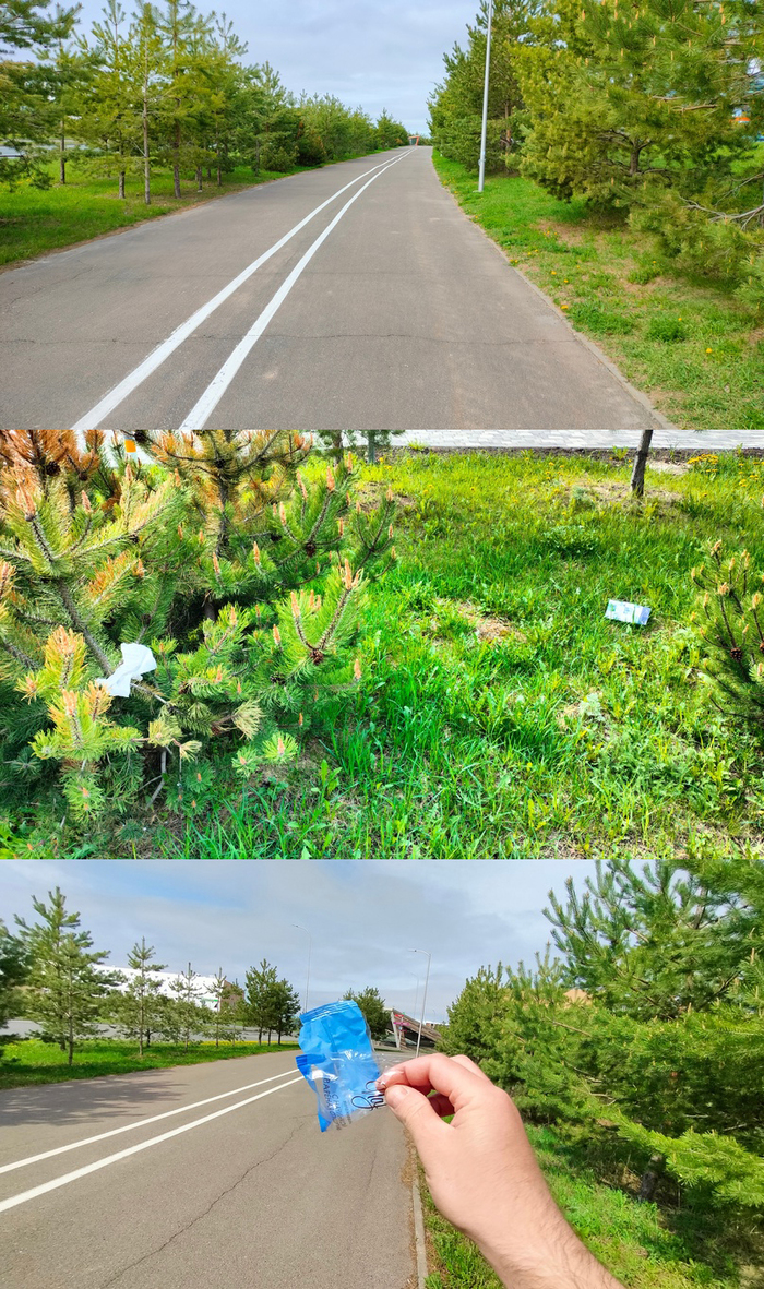 Через весь город идет довольно приятная вело-пешеходная дорога. Первый мусор. Донес до урны.
