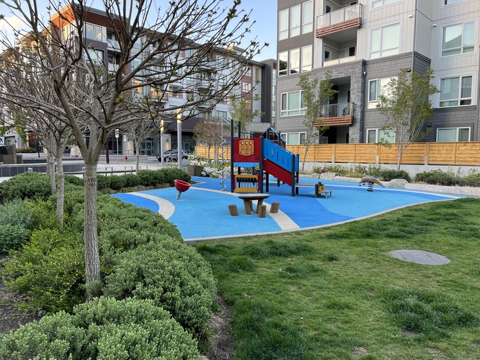 Детская площадка. Я бы ее сделал немного в отдалении от жилой застройки. Но хорошо уже то что она не центре жилого квартала.
