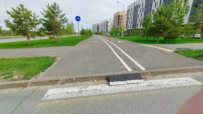 Большой загадкой является отсутствие занижений тротуара или завышений проезжей части. Может 2012 году, когда начиналось строительство, еще не знали от таких важных нюансах.