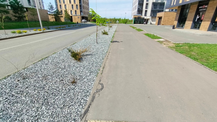 Тут живет какой-то адепт. Который знает секрет, что если оставить куски газонов с открытым грунтом, то будет грязно