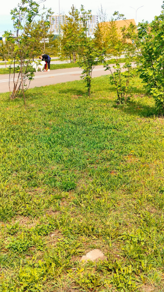 Стоял и наблюдал за собаководихой. Убрала какахи. Есть подозрение, что тут так поступают все владельцы собак. Потому как каках на улице не видел.