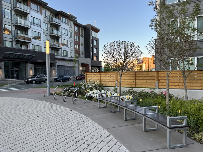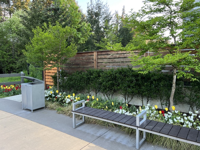 Первое что я увидел это чудовищно говенные лавки. Не удобные. С очень близкостоящей урной.