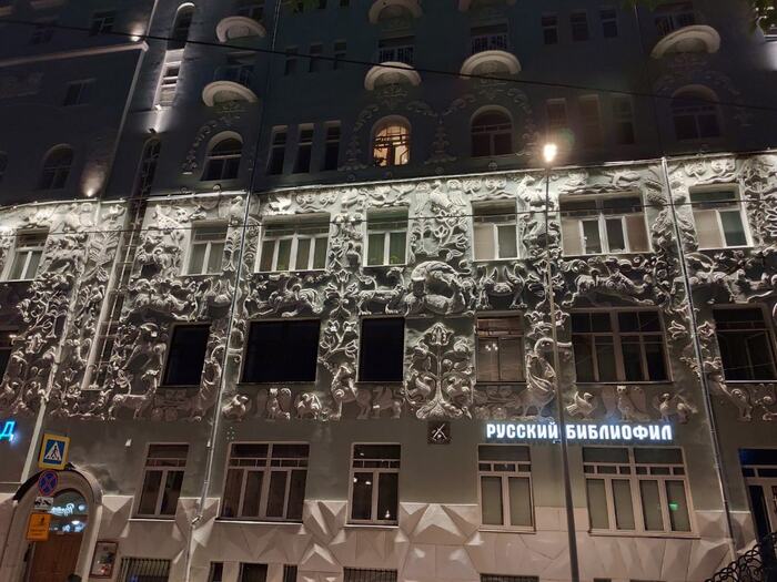Яркое здание с богатым декором. Летучие мыши, мифические существа и готическая башня с часами придают зданию особый шарм. Ходят слухи, что Ле Корбюзье считал этот дом самым красивым в Москве.