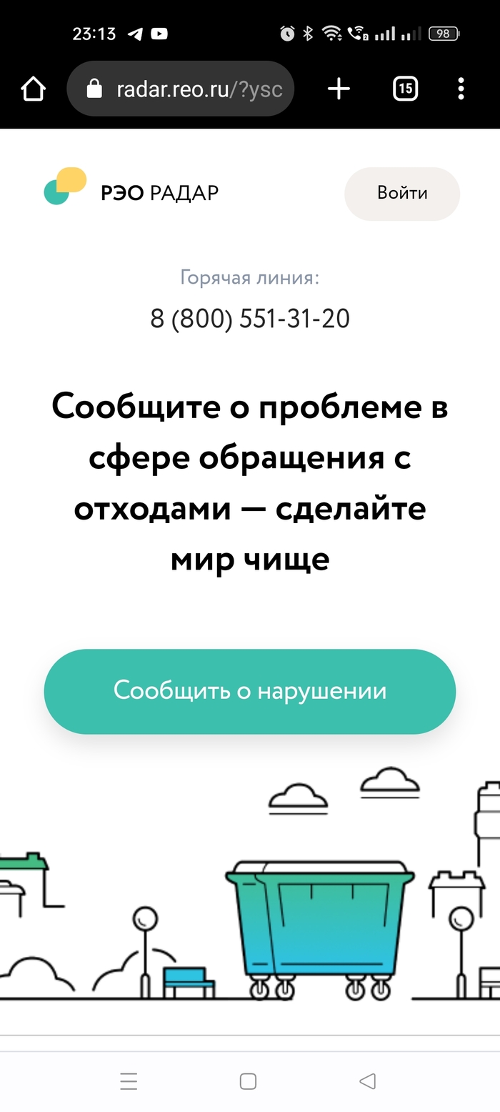 Заходим на сайт https://radar.reo.ru, авторизуемся и создаём обращение о проблеме. Прикладываем фото и адрес свалки.