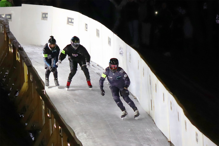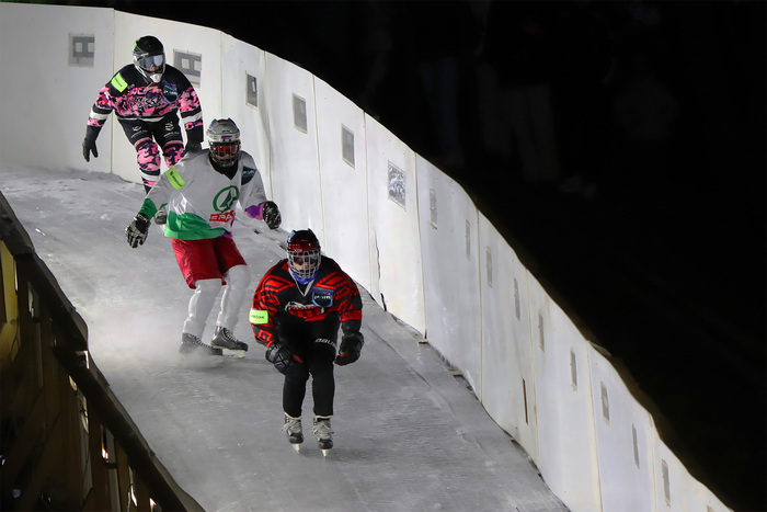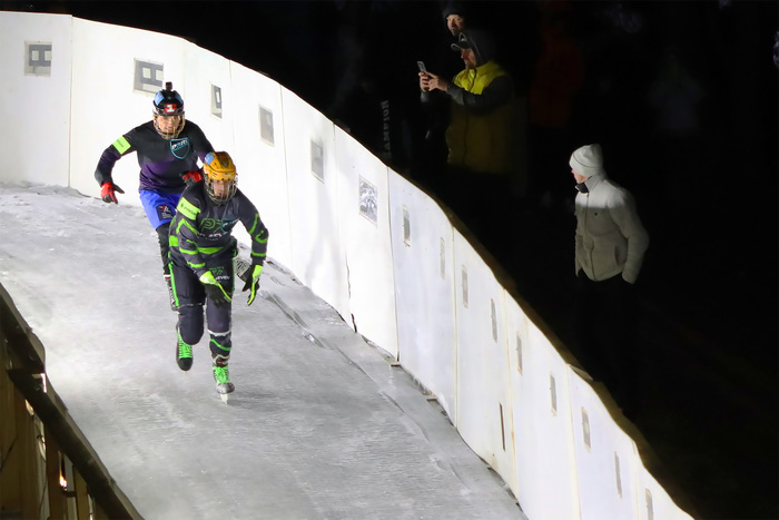 Посмотрев на время, я решил рискнуть и отправился на самокате в сторону следующей достопримечательности — канатной дороги, соединяющей Нижний Новгород с Бором — его городом-спутником, находящимся на противоположном берегу Волги. По пути мне повстречалась та самая загадочная конструкция, которая и впрямь оказалась трамплином, где спортсмены оттачивают мастерство даже летом.